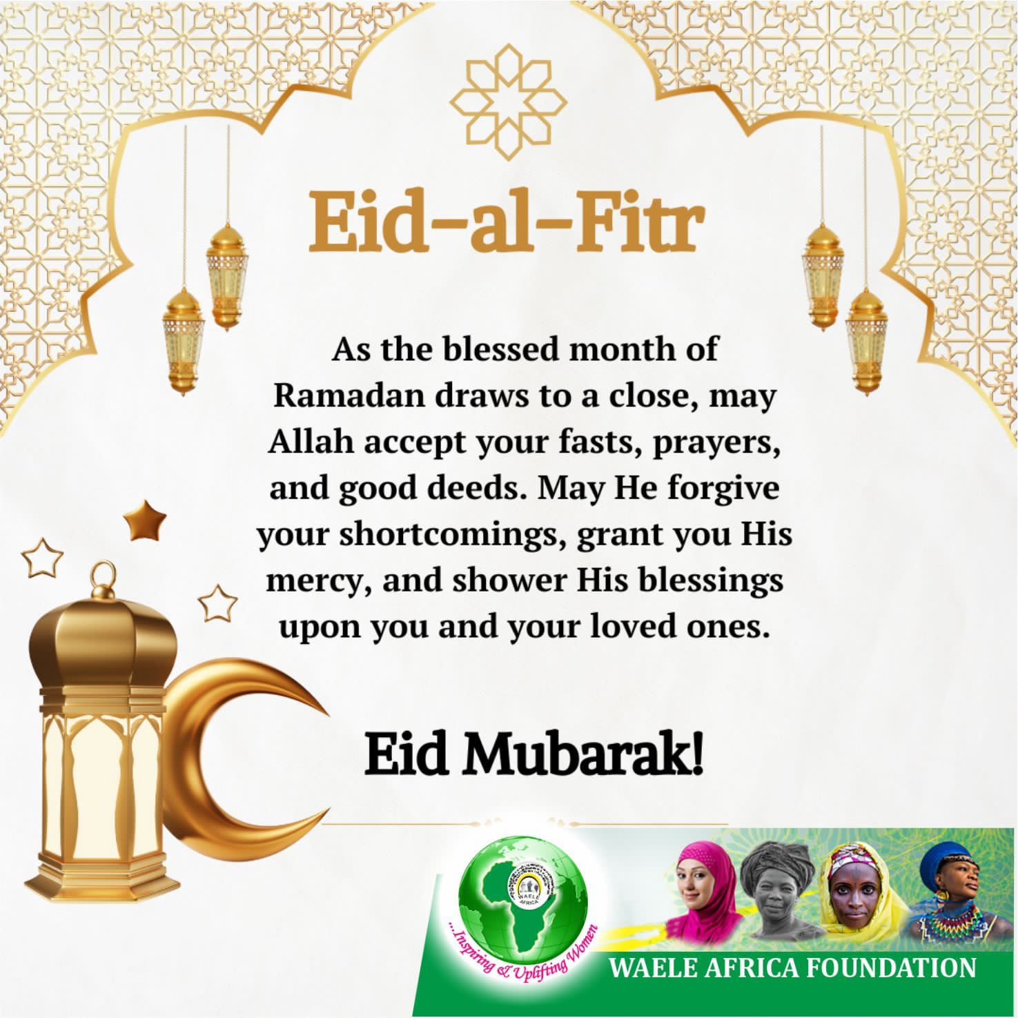 On behalf of our President/Founder, the entire Board of Trustees, Coordinators, Members, and Staff of WAELE AFRICA Foundation, we extend our warmest Eid al-Fitr greetings to our Muslim sisters and brothers across Africa and around the world.